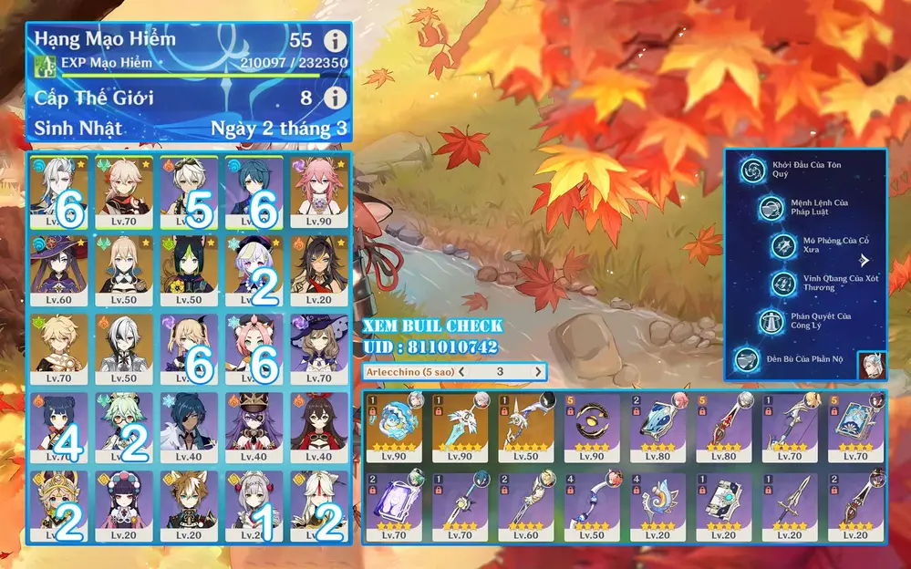 #359309 500,000 500,000 AR level 60 Khu Vực asia Tướng 5* 15 Check Build qua UID trong ảnh Tướng: 15 Vũ khí: 6 Chi tiết