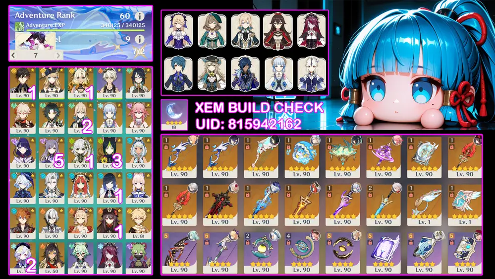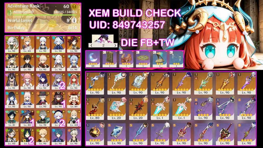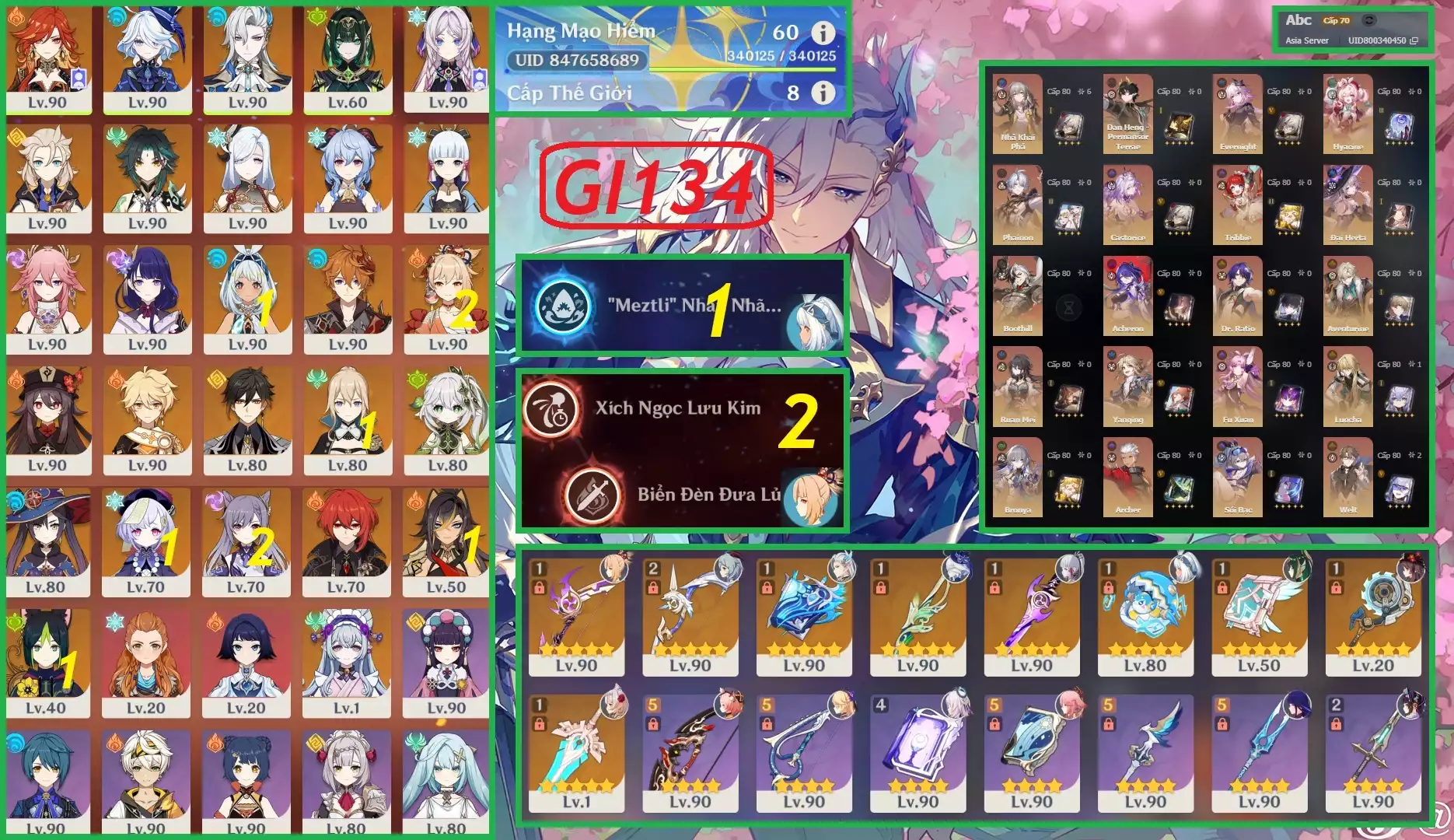 #359324 700,000 700,000 AR level 60 Khu Vực asia Tướng 5* 18 [Acc 2 Game] Check Build qua UID trong ảnh Tướng: 18 Vũ khí: 7 Chi tiết