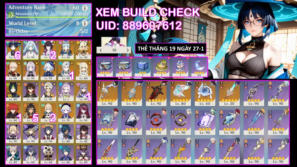#359323 500,000 500,000 AR level 59 Khu Vực asia Tướng 5* 13 Check Build qua UID trong ảnh Tướng: 13 Vũ khí: 4 Chi tiết