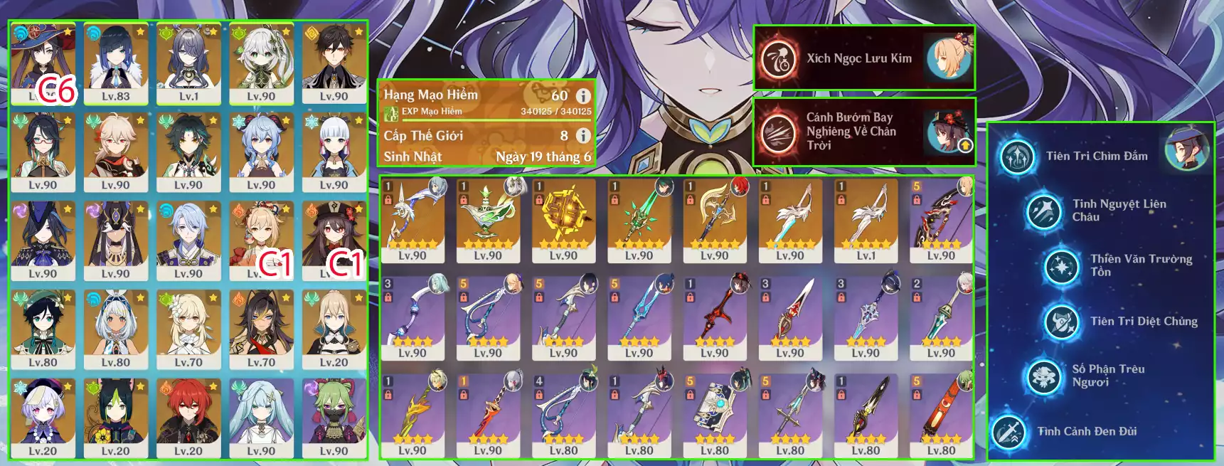 #355958 1,500,000 1,500,000 AR level 60 Khu Vực asia Tướng 5* 25 VJP : Baal C3R1, Nahida C2 - banner nhân vật 13 trang sắp nổ Tướng: 25 Vũ khí: 18 Chi tiết