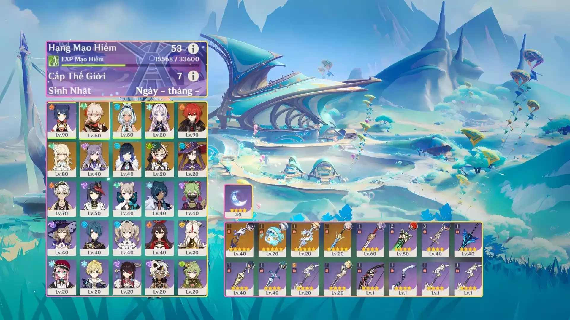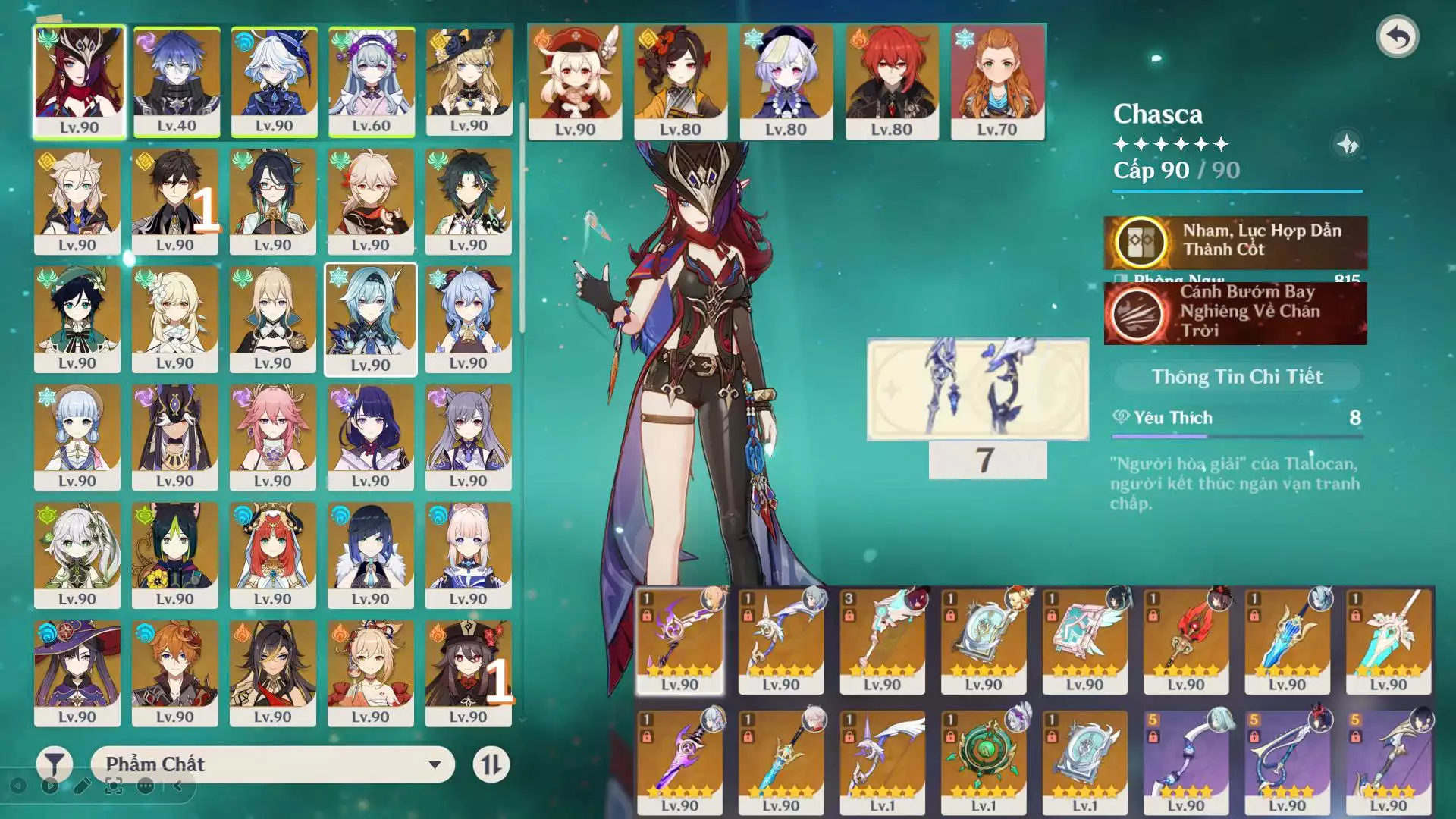 #356182 700,000 700,000 AR level 60 Khu Vực asia Tướng 5* 21 VJP : Baal c2, yelan C1, Xilone C1 - banner nhân vật lệch 11 trang Tướng: 21 Vũ khí: 11 Chi tiết