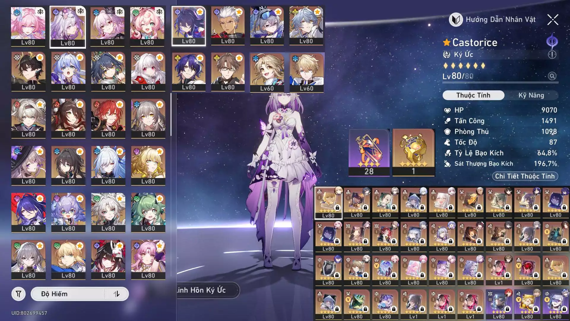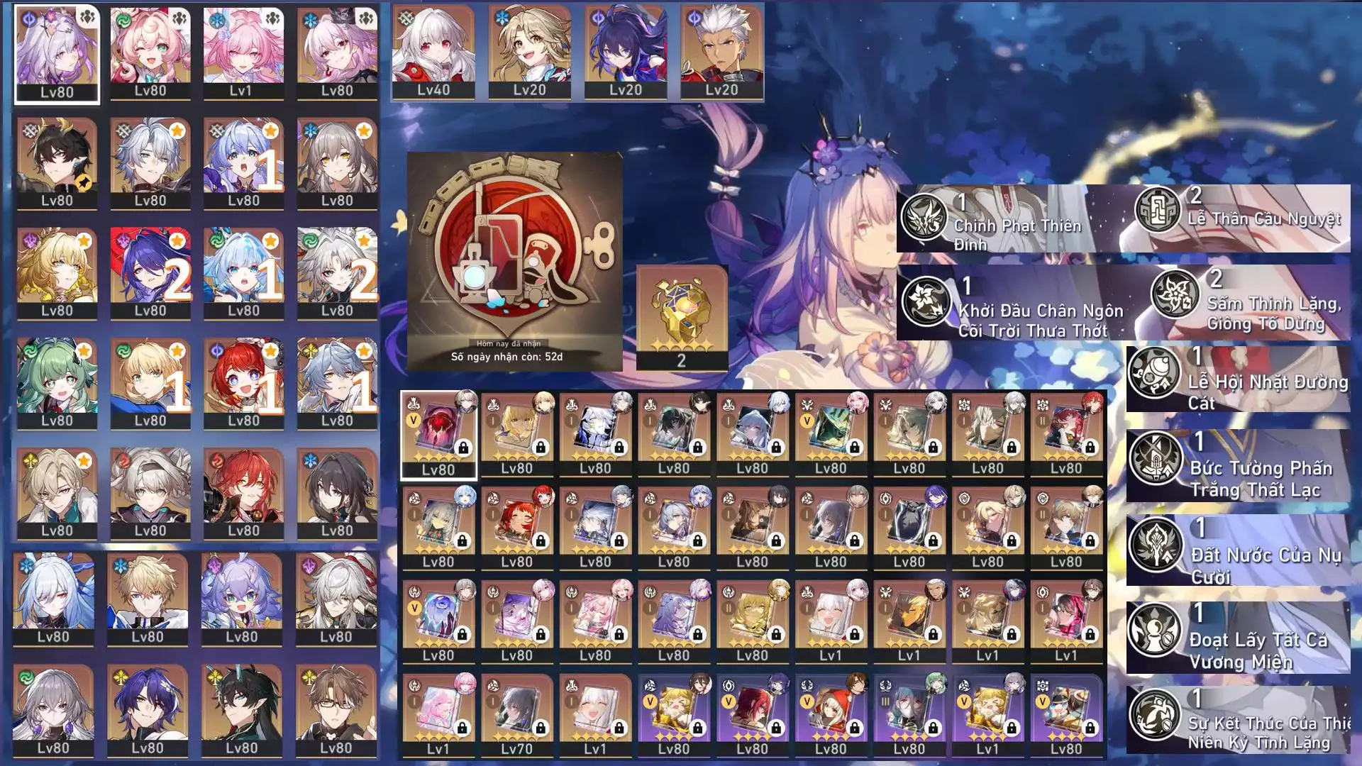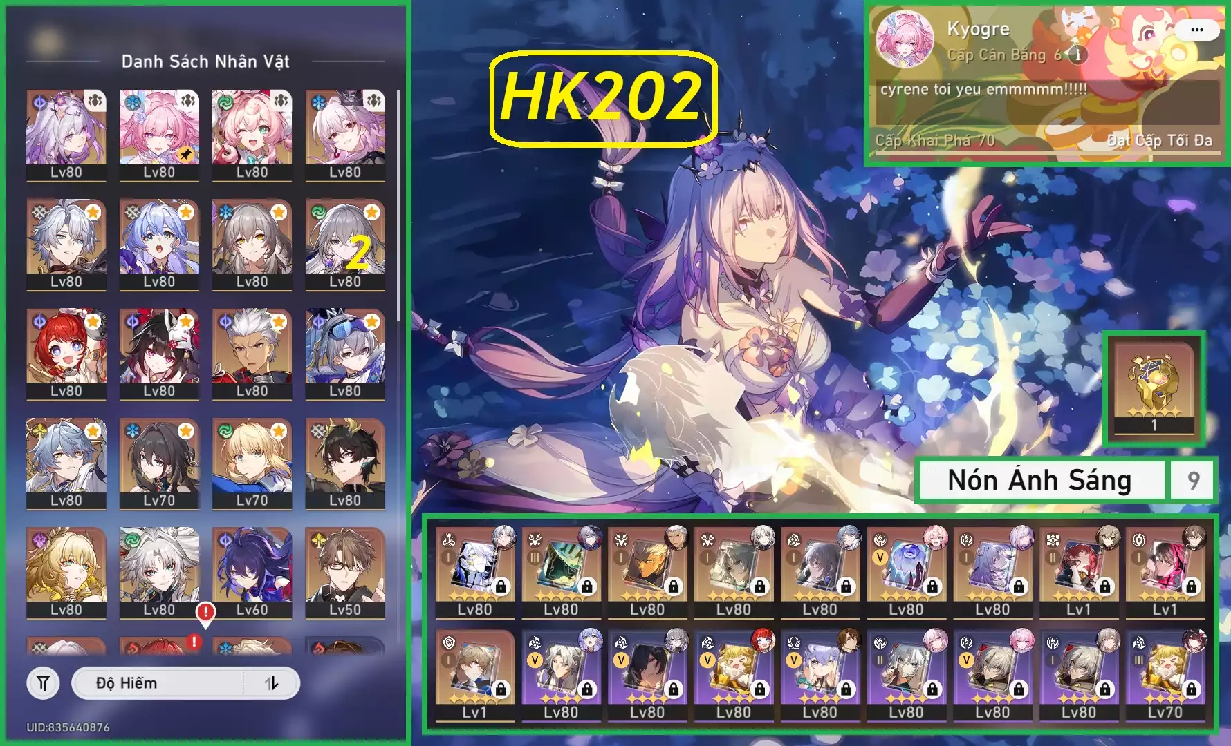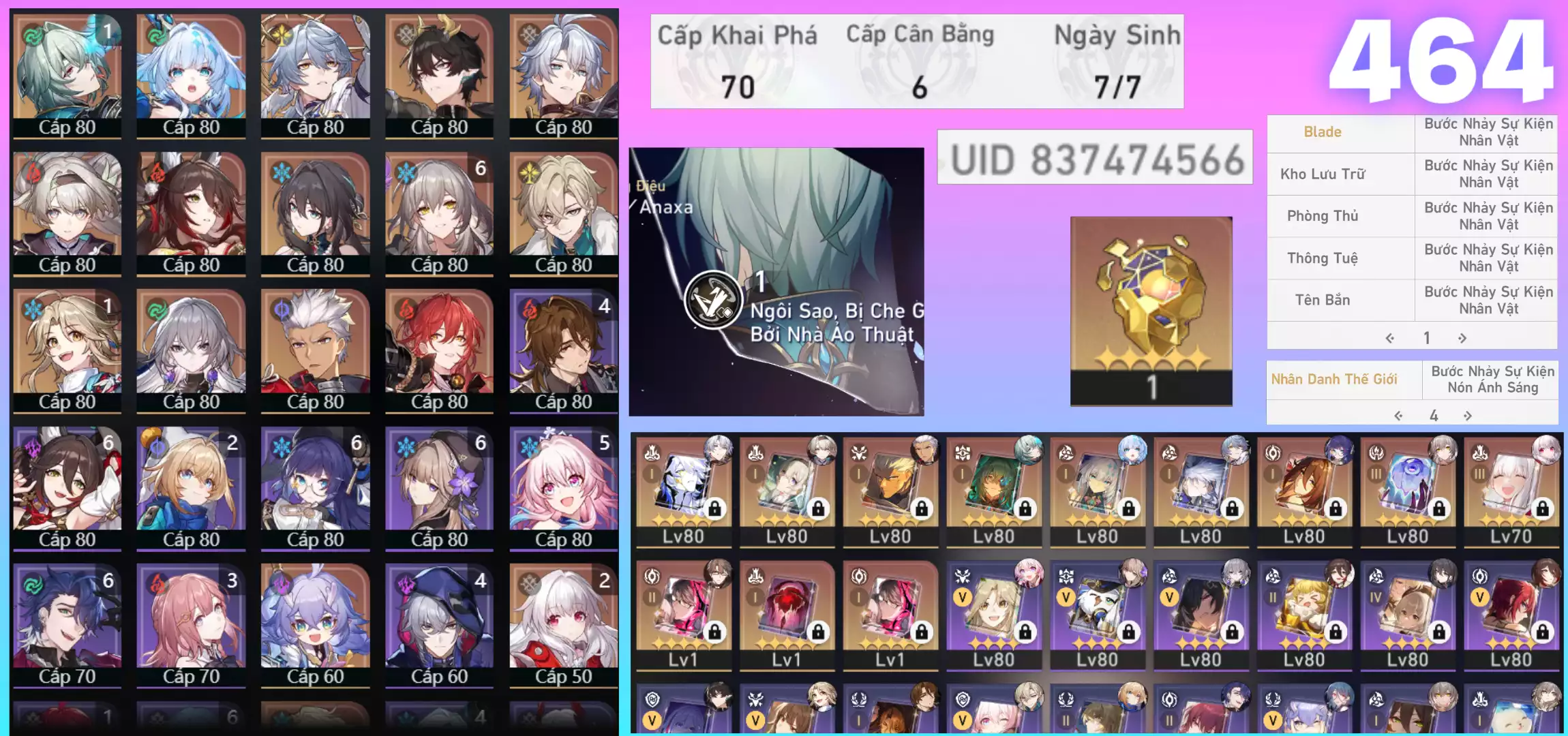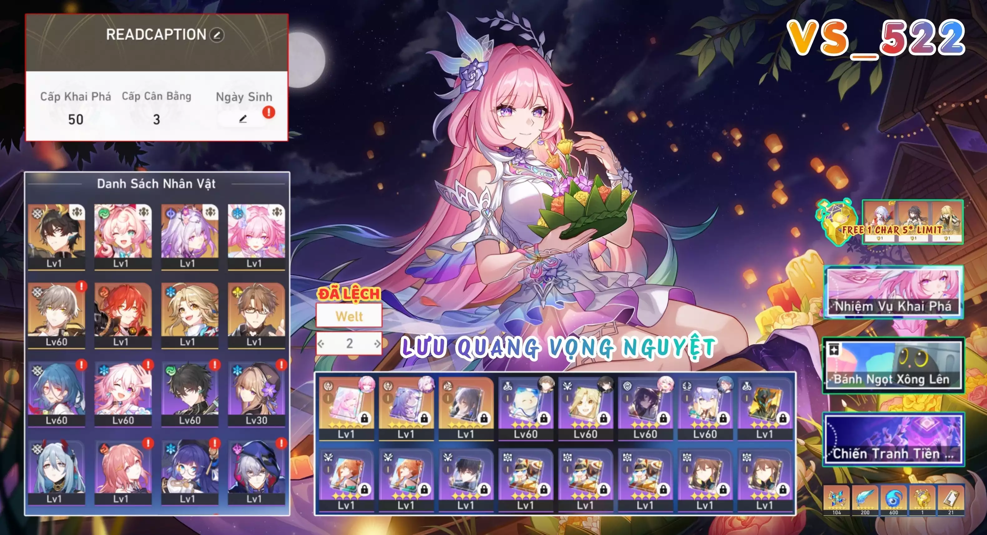 #87028 300,000 AR level 50 Khu Vực asia Tướng 5* 7 [ VS_522 SIÊU PHẨM LƯU QUANG VỌNG NGUYỆT / MAIN NAM / CHƯA SN! ] CASTORICE TRẤN + CYRENE TRẤN + HYACINE + WELT + DAN HENG PT. FREE 1 CHAR 5* LIMIT. 2 TRANG BANNER LIMIT CÓ BẢO HIỂM. CÒN NHIỀU TÀI NGUYÊN CÀY !! Tướng: 7 Vũ khí: 2 Chi tiết