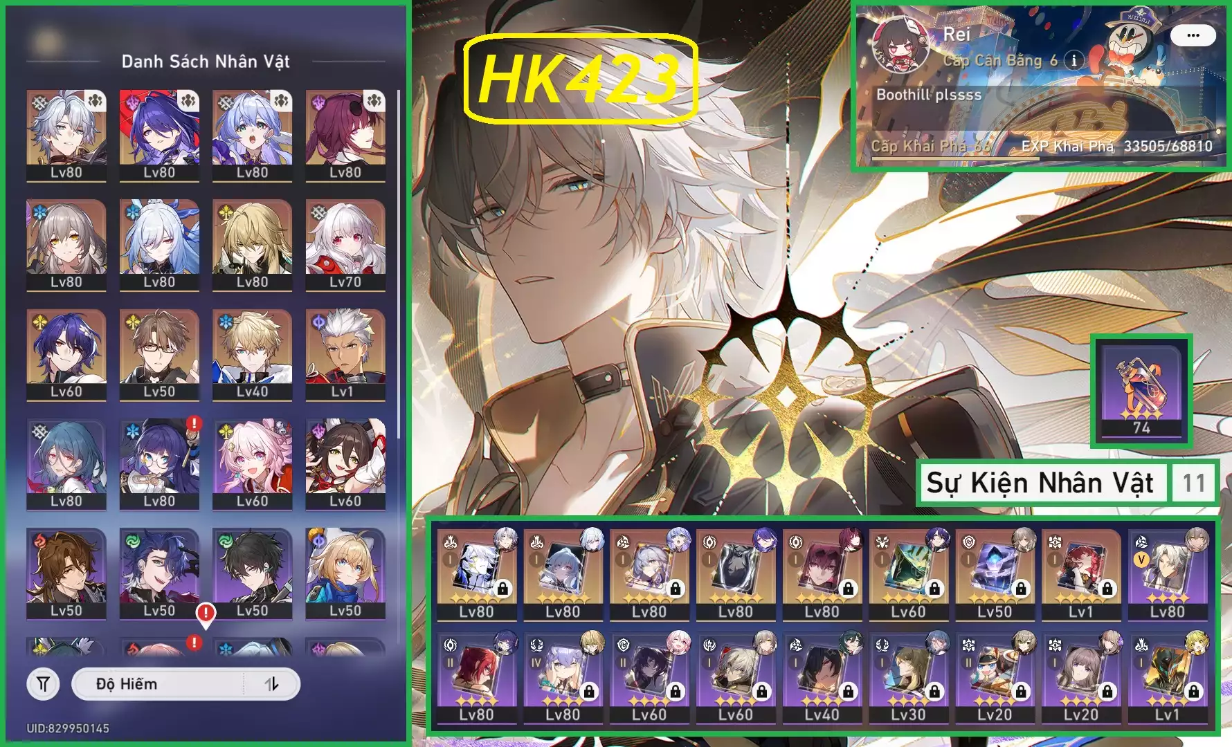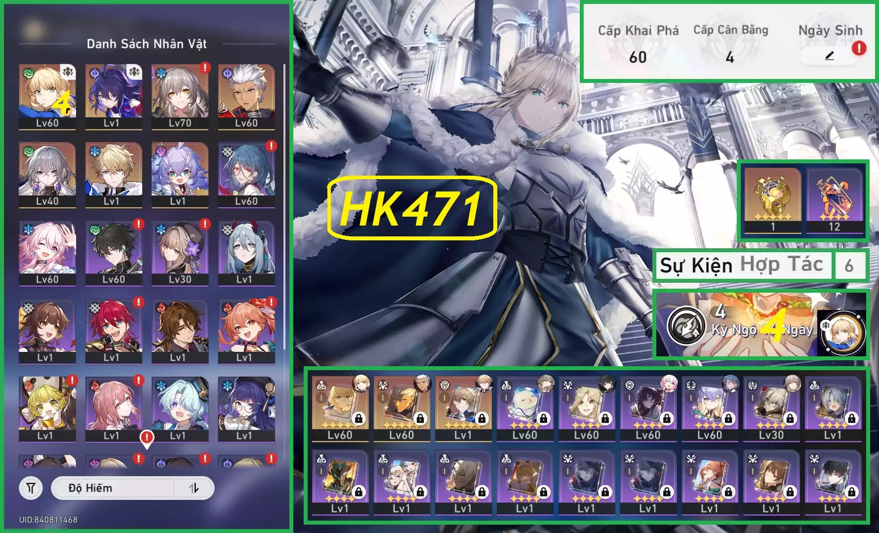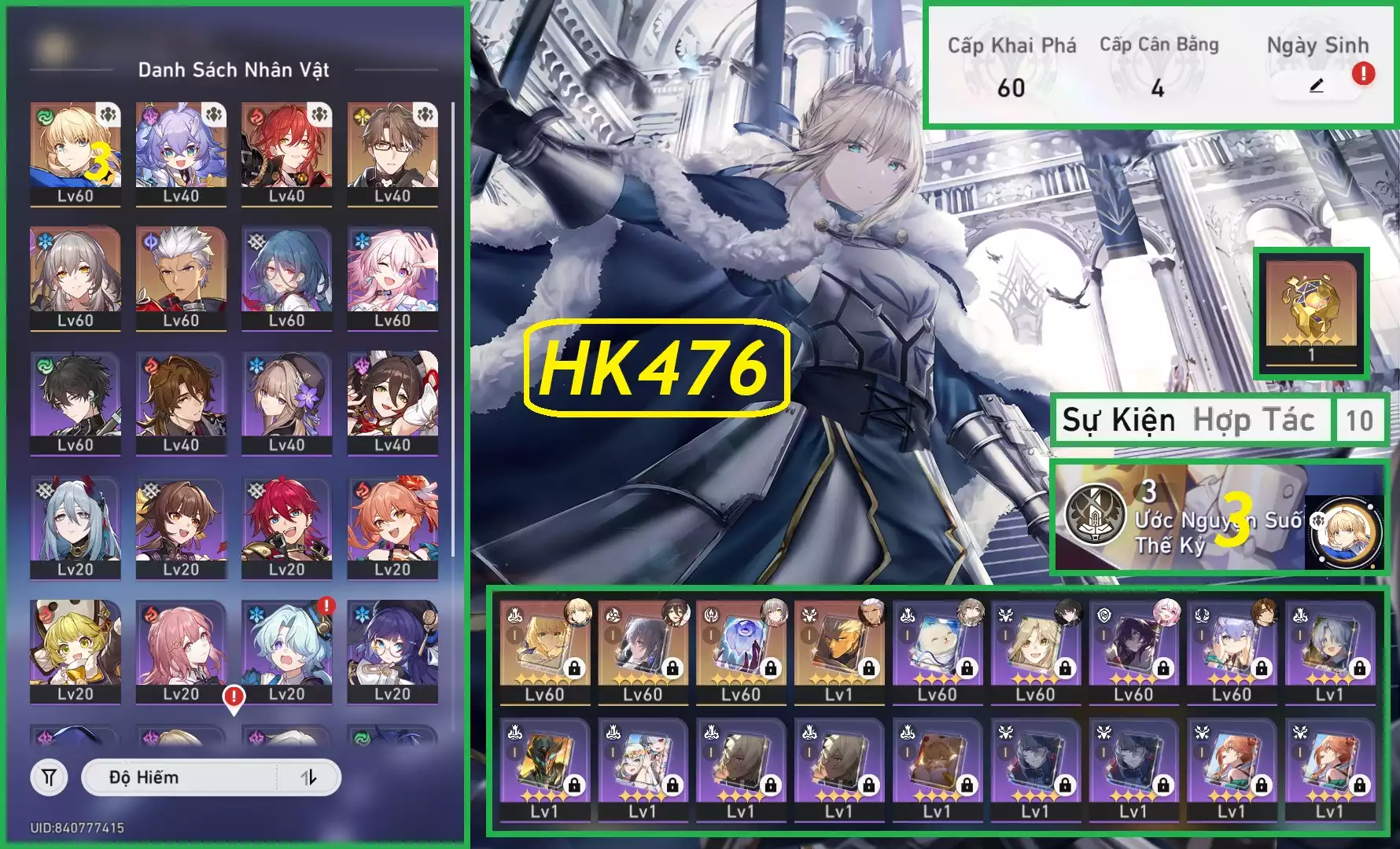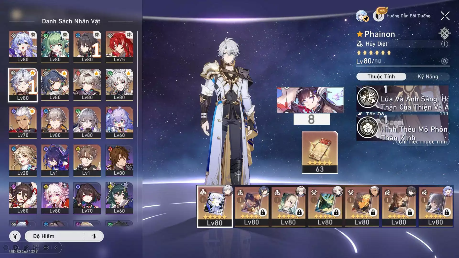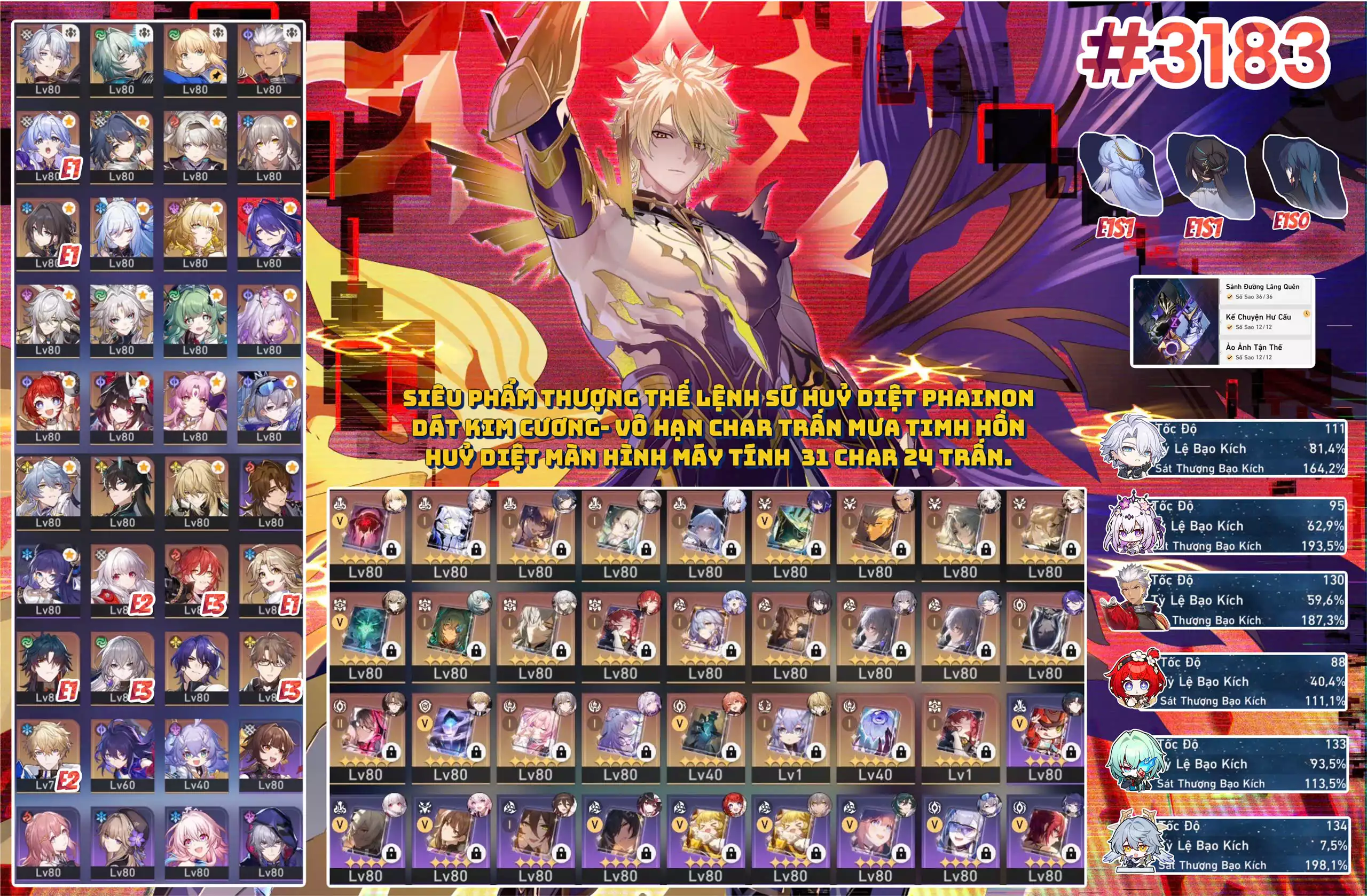 #84791 550,000 AR level 70 Khu Vực asia Tướng 5* 14 VJP : Phainon E1 - dư 6x vé đủ nổ đợi char sp bản sau ( nguồn CN ) Tướng: 14 Vũ khí: 7 Chi tiết
