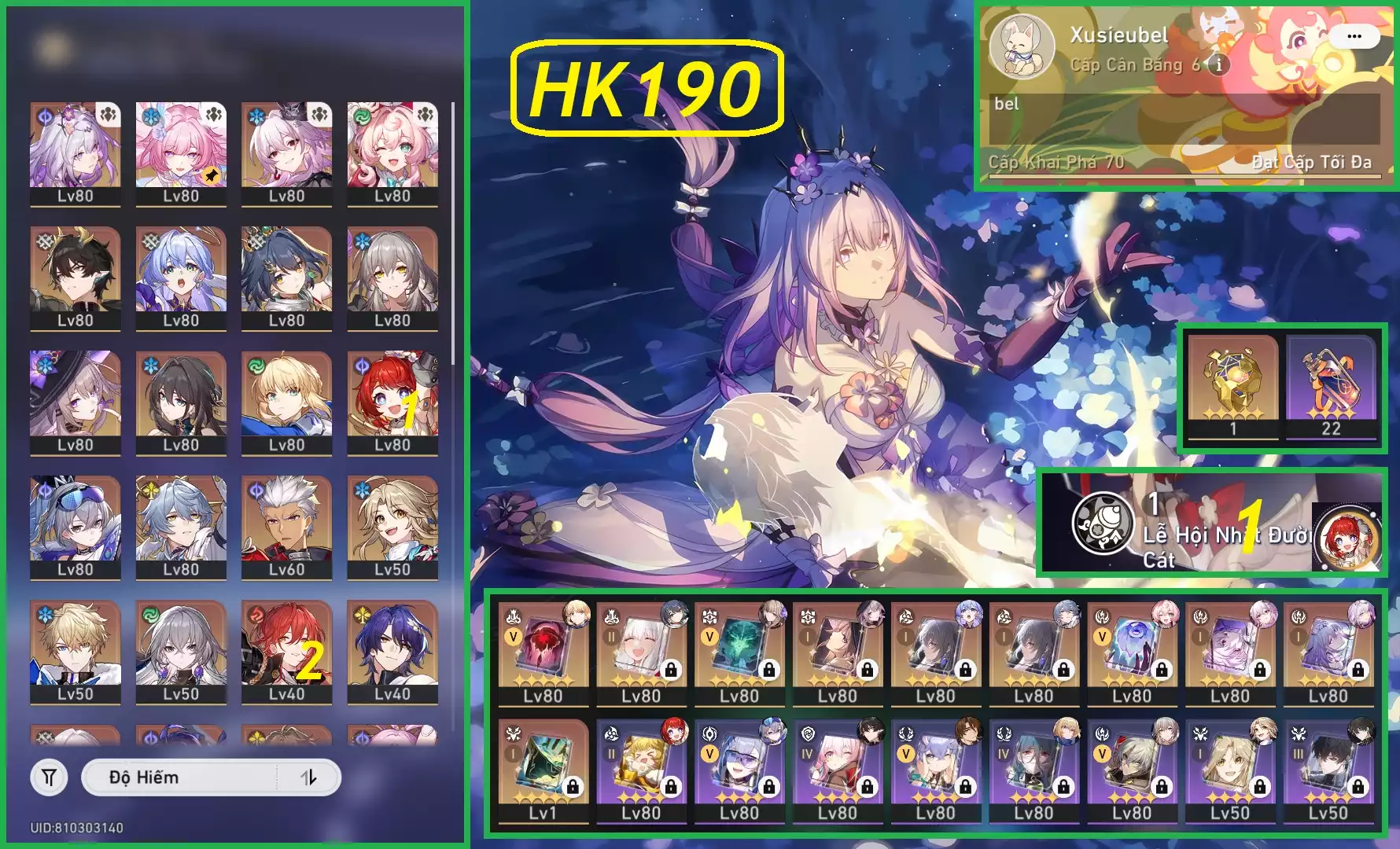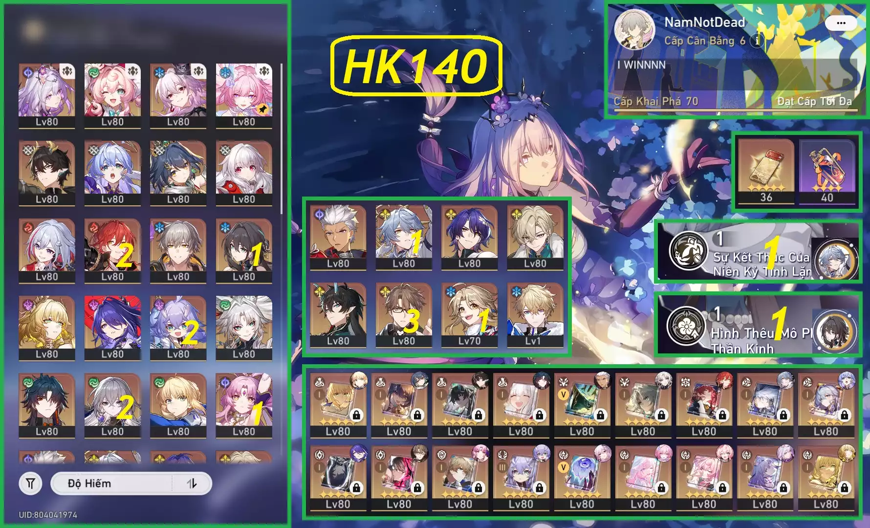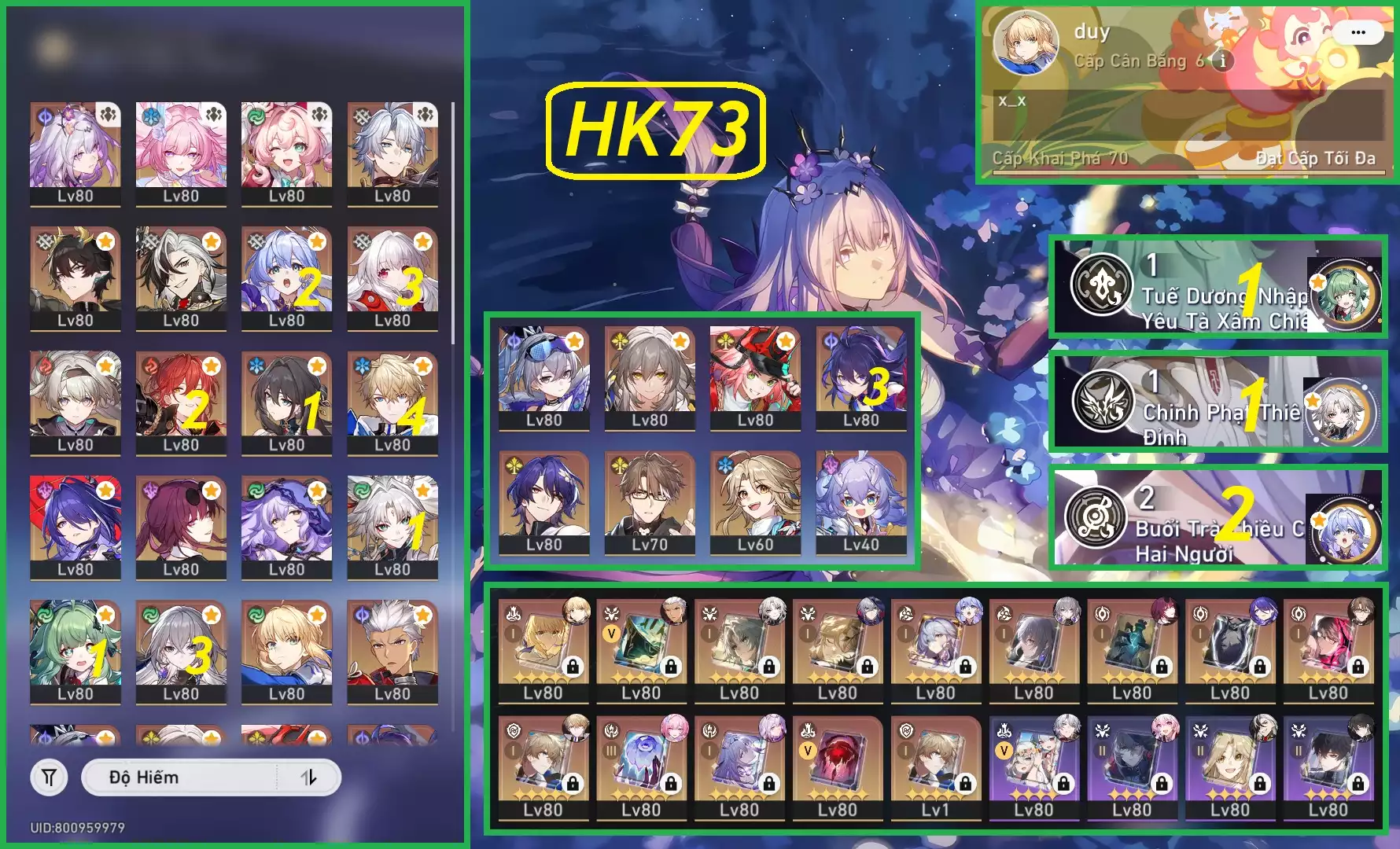 #87697 500,000 AR level 70 Khu Vực asia Tướng 5* 22 VJP : Acheron E3, Feixiao C1, Dan heng E2 - banner nhân vật đã lệch ( die FB không ảnh hưởng trải nghiệm game ) Tướng: 22 Vũ khí: 16 Chi tiết