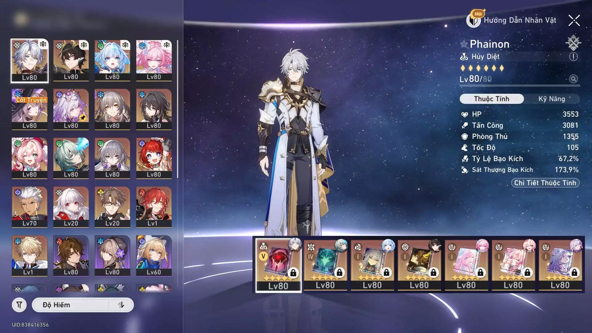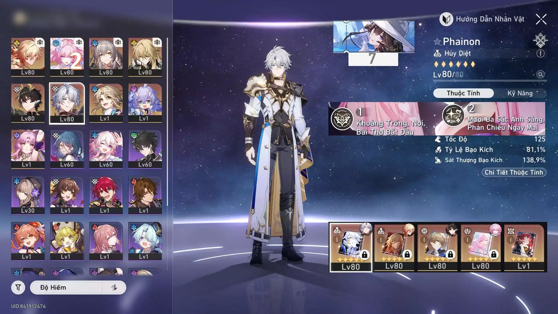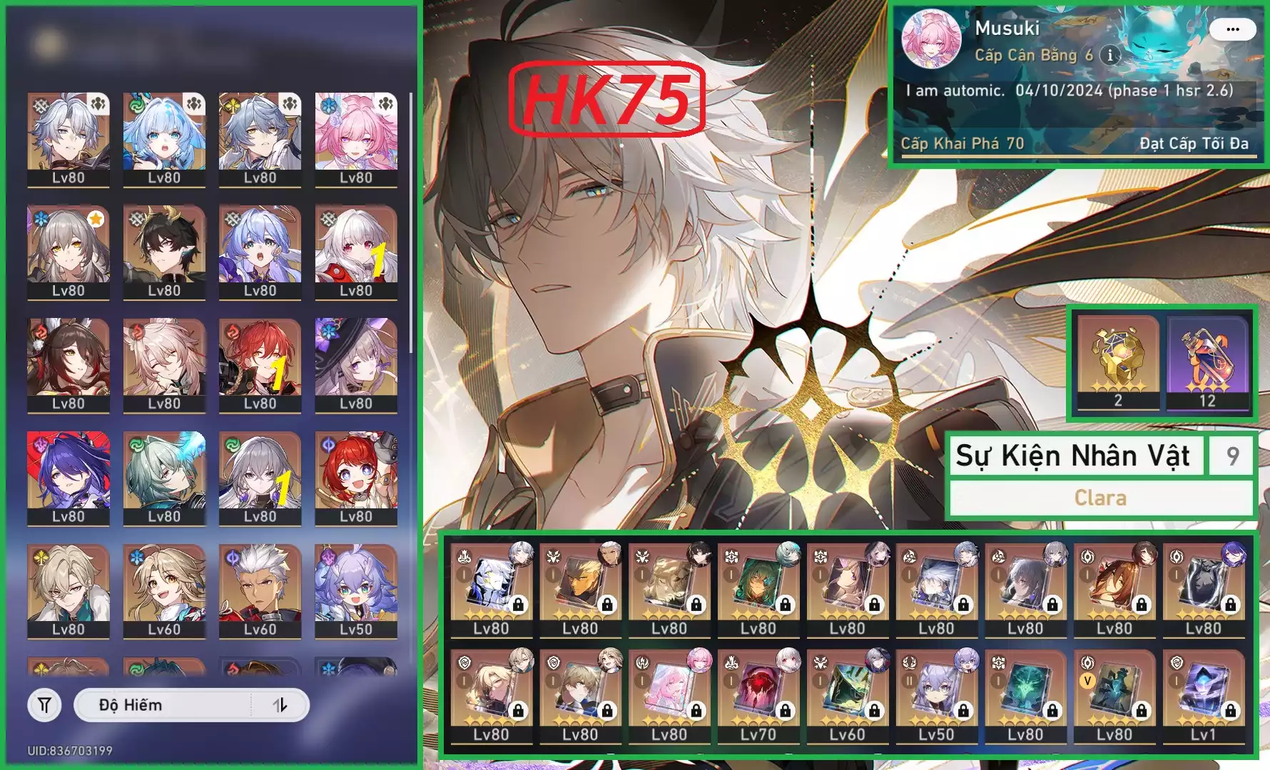 #87697 500,000 AR level 70 Khu Vực asia Tướng 5* 22 VJP : Acheron E3, Feixiao C1, Dan heng E2 - banner nhân vật đã lệch ( die FB không ảnh hưởng trải nghiệm game ) Tướng: 22 Vũ khí: 16 Chi tiết