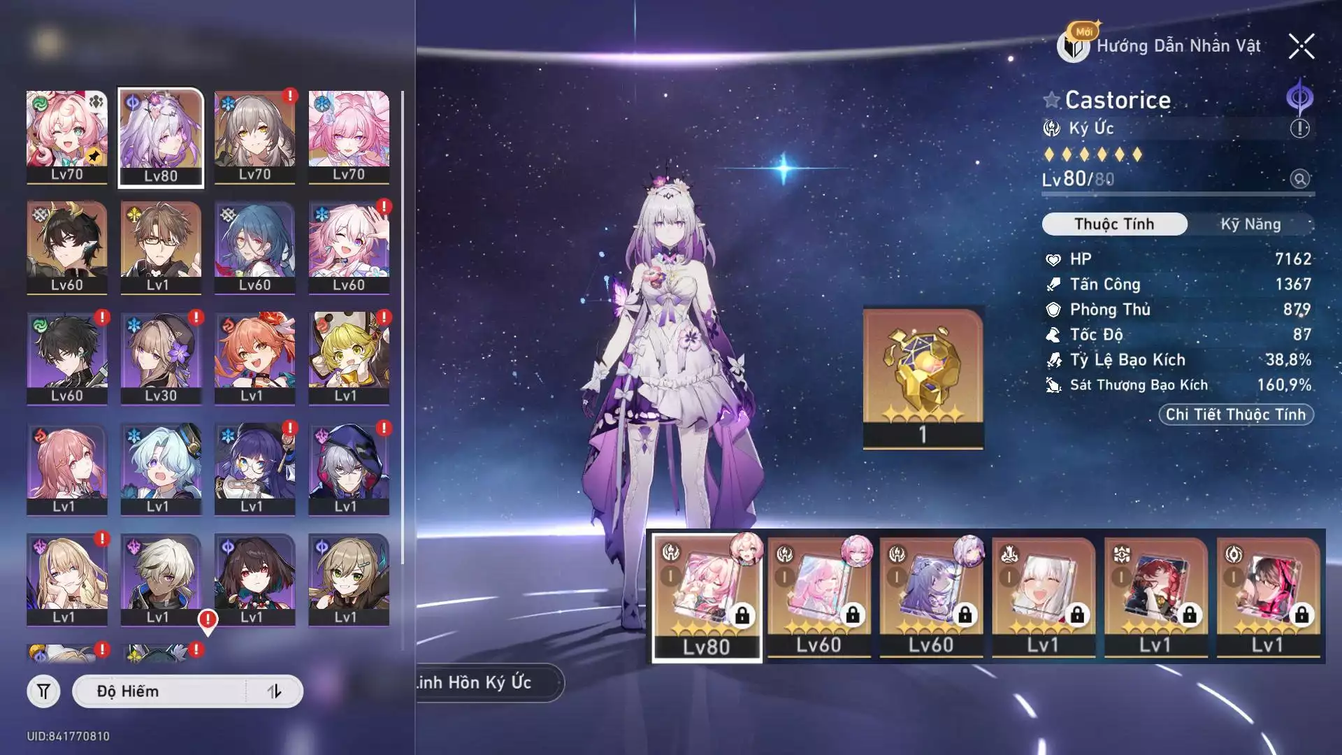 #87698 900,000 AR level 70 Khu Vực asia Tướng 5* 20 VJP : TEAM Cas E2, Cyrene E1 dát kim cương Tướng: 20 Vũ khí: 13 Chi tiết