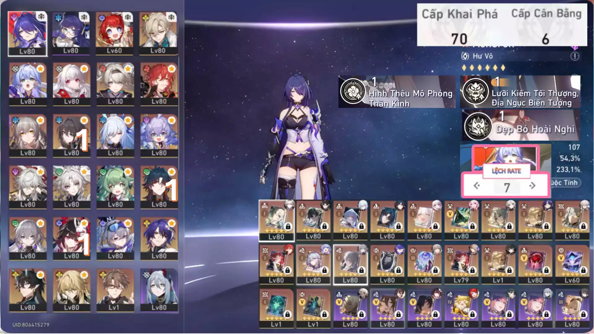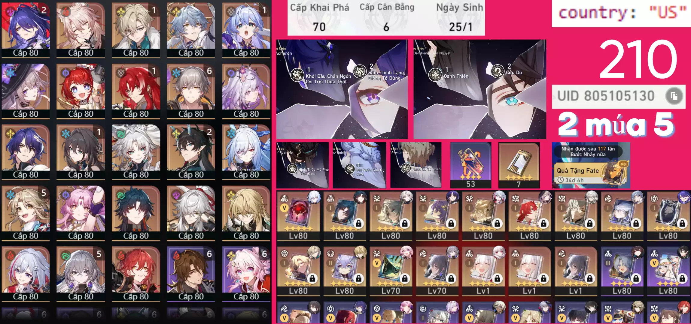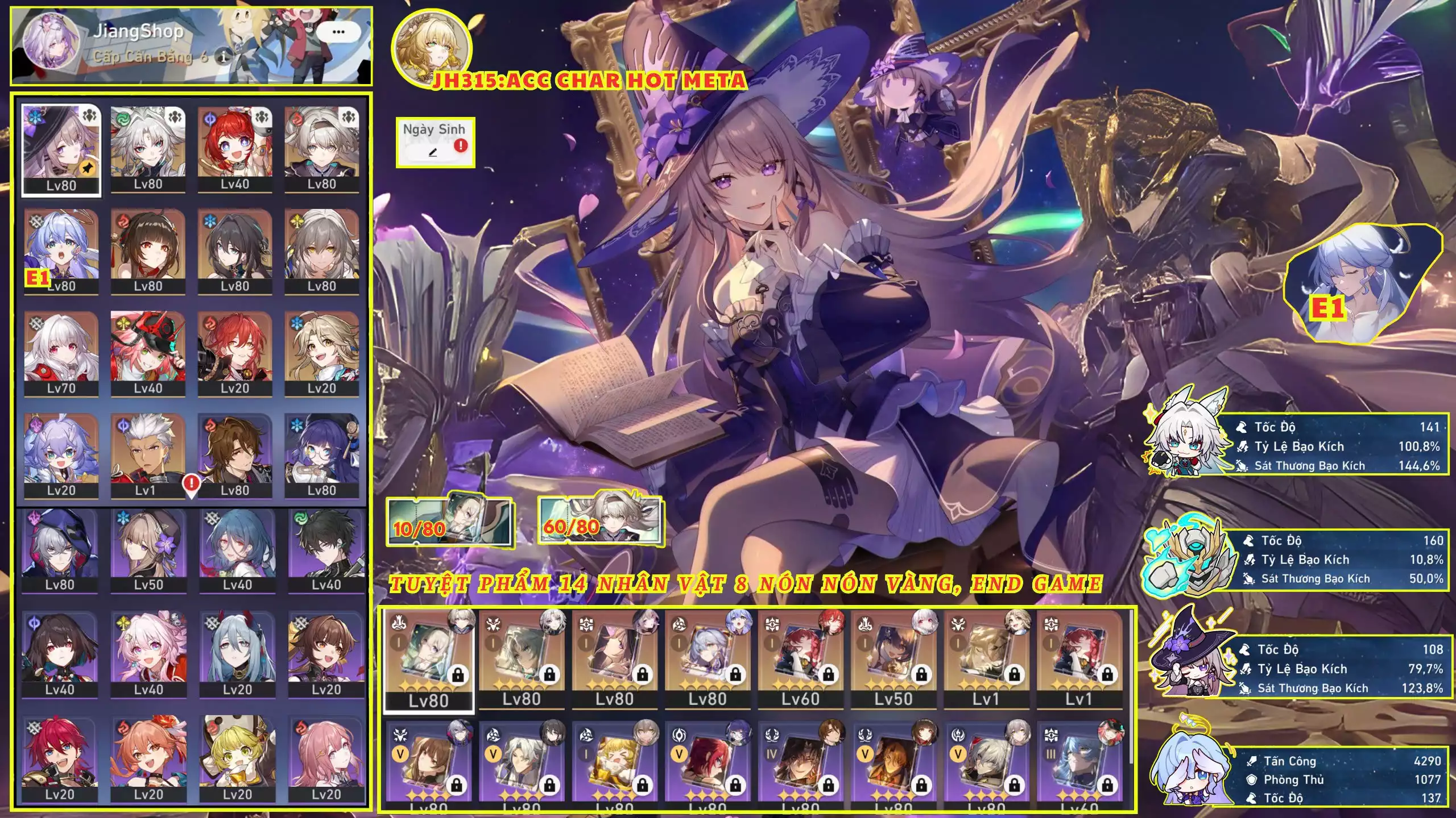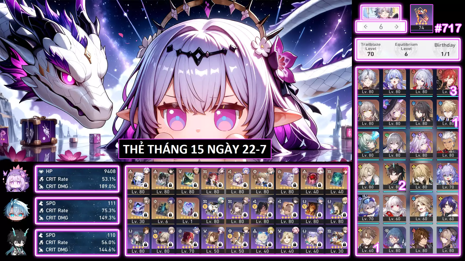 #83831 500,000 AR level 70 Khu Vực asia Tướng 5* 13 [ JH315: TEAM HERTA DÁT VÀNG, BREAK DÁT VÀNG ] ĐẠI HERTA E0S1, FEIXIAO E0S1, FIREFLY E0S1,ROBIN E1S1, TRIBILE, LINGSHA, RAPPA, RUANMEI, ACHER, BAILU, CLARA,HIMEKO ACC CHƯA SET SINH NHẬT/ BANNER 60/80 Tướng: 13 Vũ khí: 6 Chi tiết