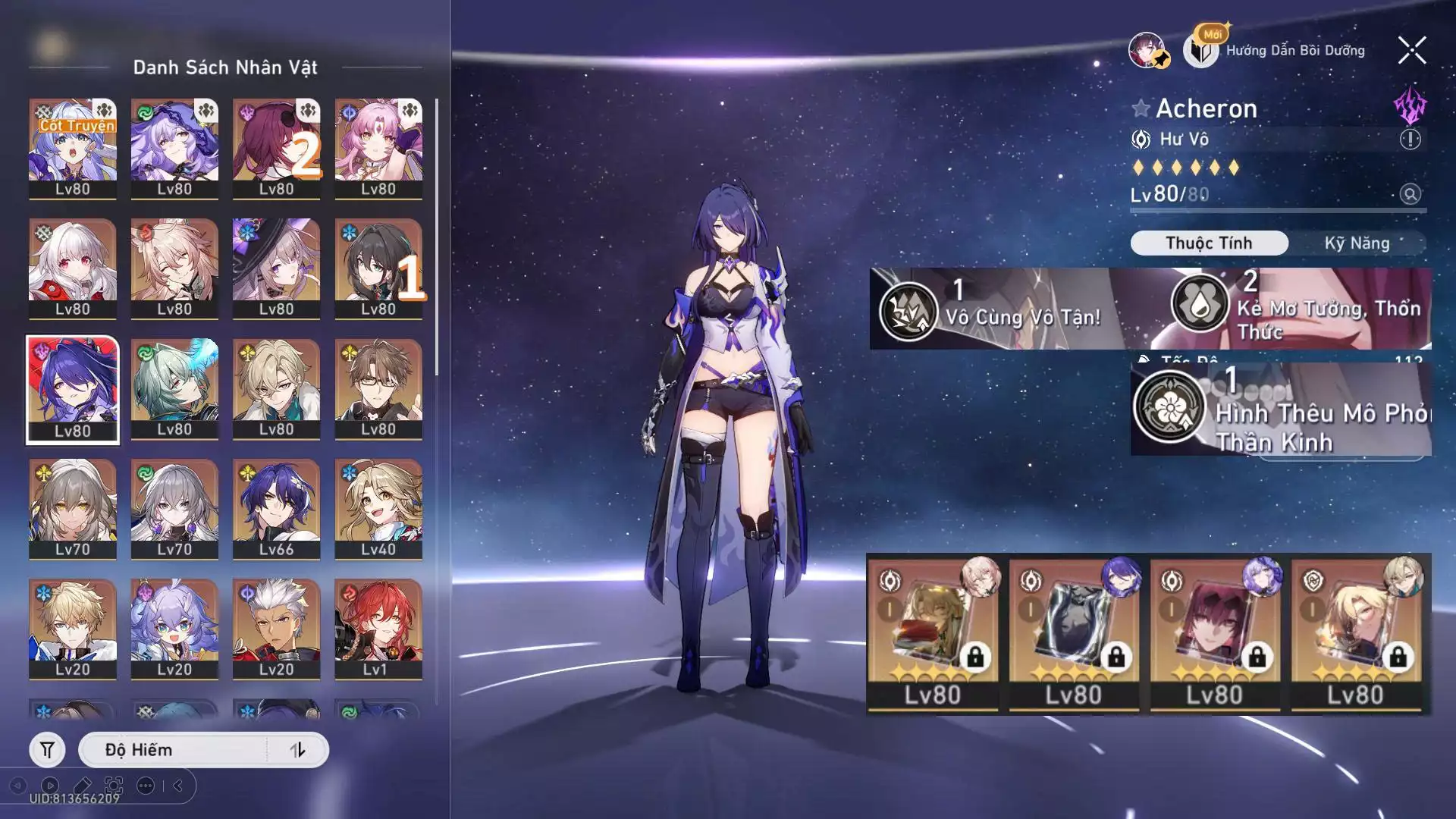 #85138 800,000 AR level 70 Khu Vực asia Tướng 5* 23 VJP : Kafka E2, Acheron E1, Mei E1, Seele E2 - banner nhân vật đã lệch 13 trang cho ai đợi char mới Tướng: 23 Vũ khí: 12 Chi tiết