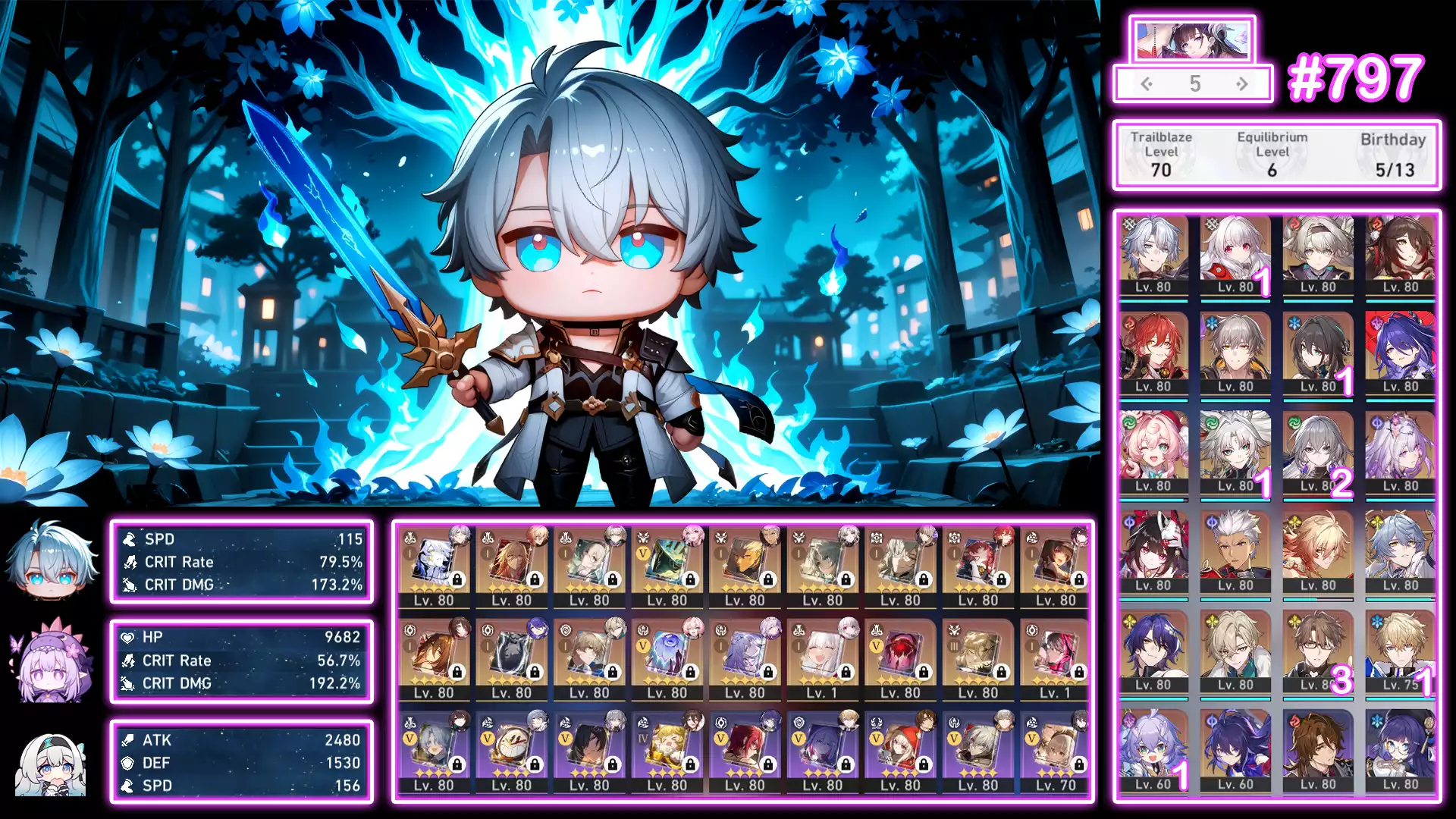 #84870 1,500,000 AR level 70 Khu Vực asia Tướng 5* 26 VJP : Acheron E1, Blade E1, Mei E1, Jingliu E1 Tướng: 26 Vũ khí: 18 Chi tiết