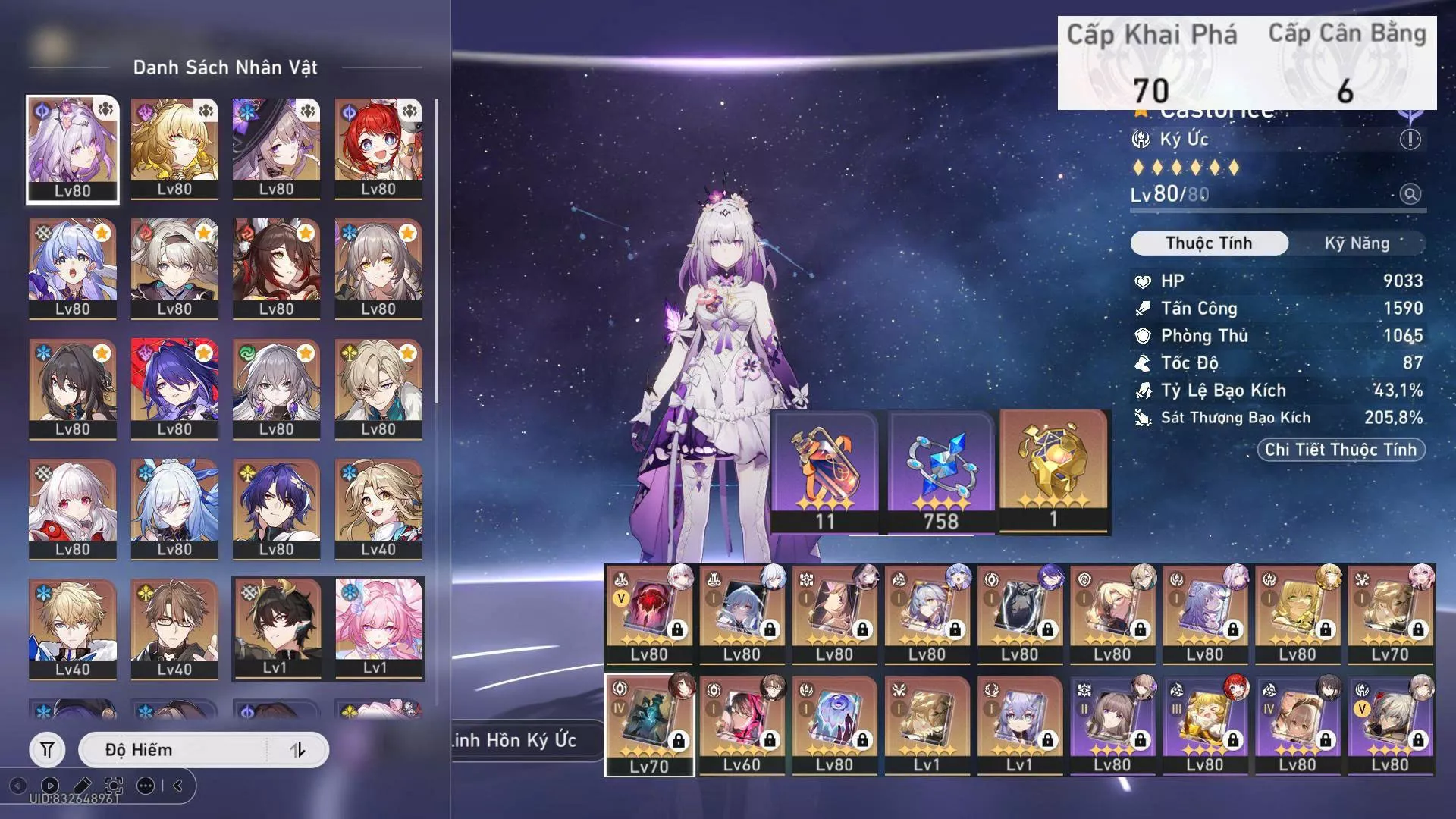 #82997 650,000 AR level 70 Khu Vực asia Tướng 5* 20 acc vip ( acheron C4R1 , nguồn CN ) Tướng: 20 Vũ khí: 6 Chi tiết