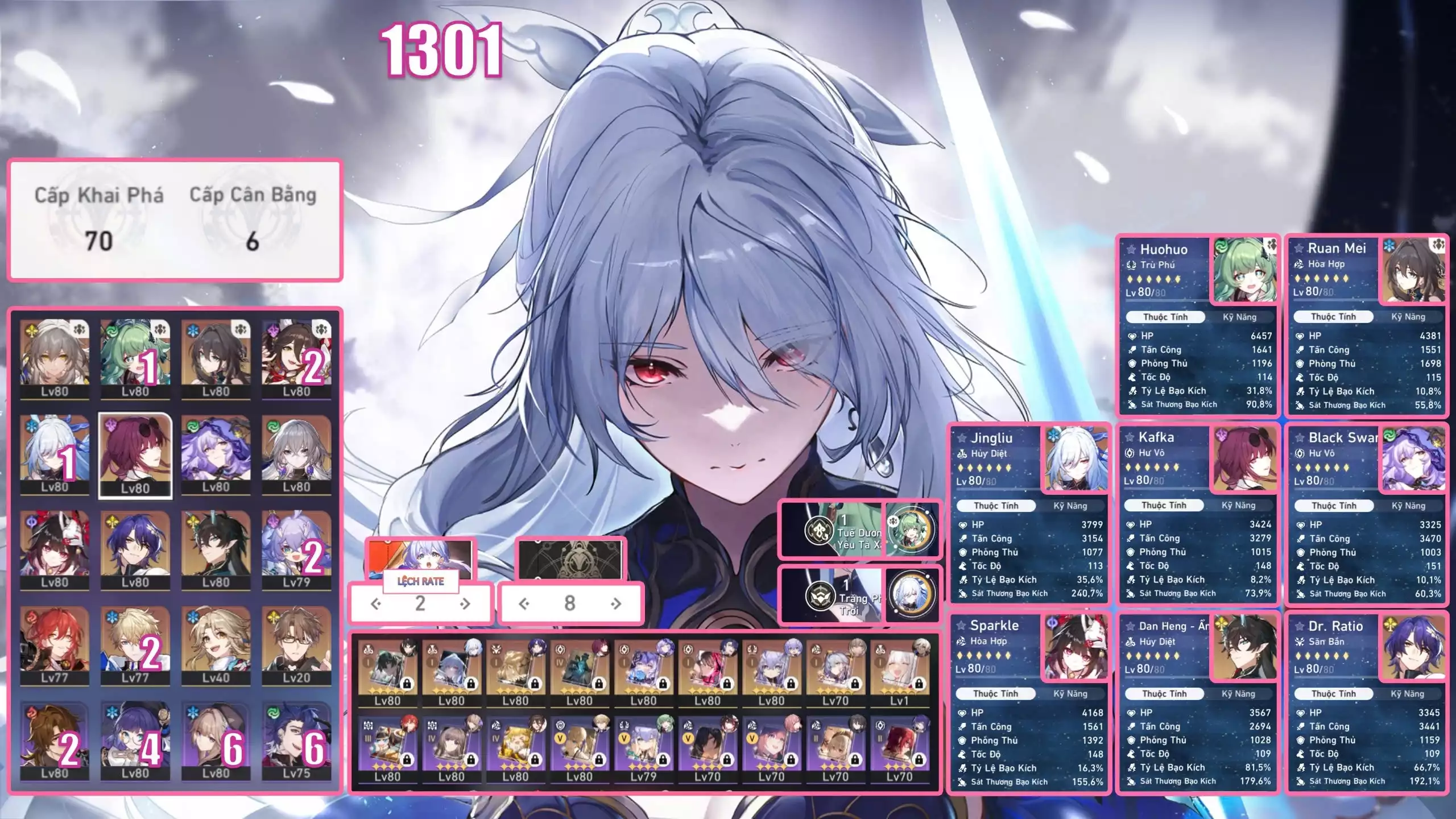 #61799 3,500,000 AR level 70 Khu Vực asia Tướng 5* 13 [ 2035 ] Jingliu e2 trấn+ Seele e2 trấn+ sparkle trấn+ IL trấn+ Bailu trấn+ Luocha trấn+ Aventurine trấn+ Sói Bạc trấn+ Welt e1+ Bronya e2+ Dr ratio trấn s2+ Yanqing+ Calra trấn+ Bảo hiểm nhân vật Tướng: 13 Vũ khí: 11 Chi tiết