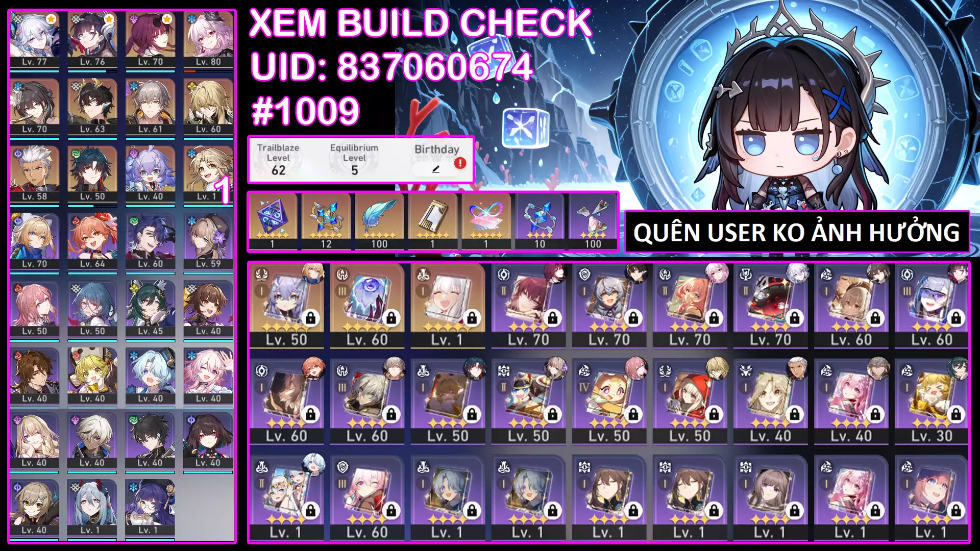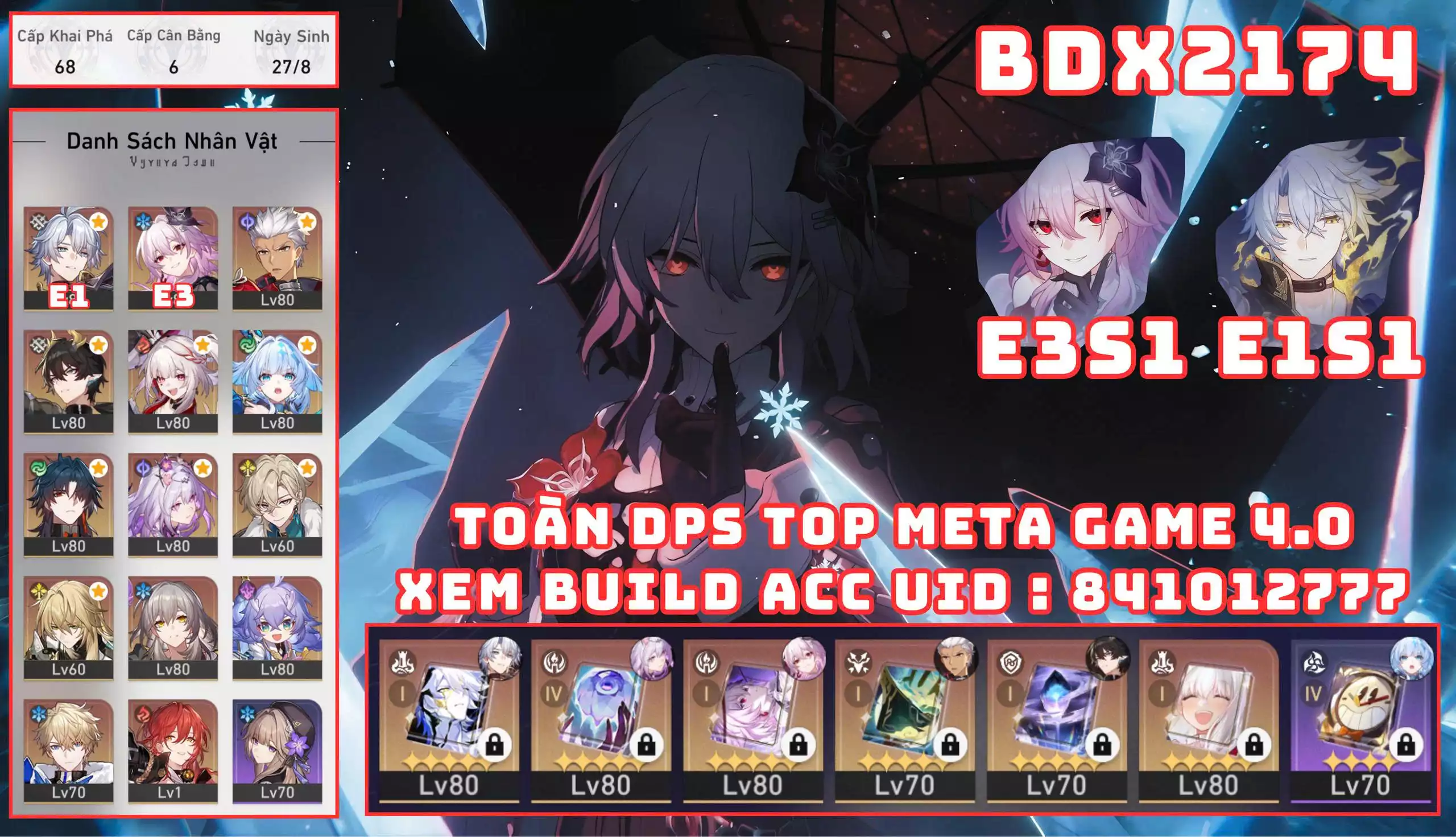 #89167 300,000 AR level 68 Khu Vực asia Tướng 5* 10 BDX2174 - NHIỀU CHAR TOP META 4.0 Tướng: 10 Vũ khí: 2 Chi tiết