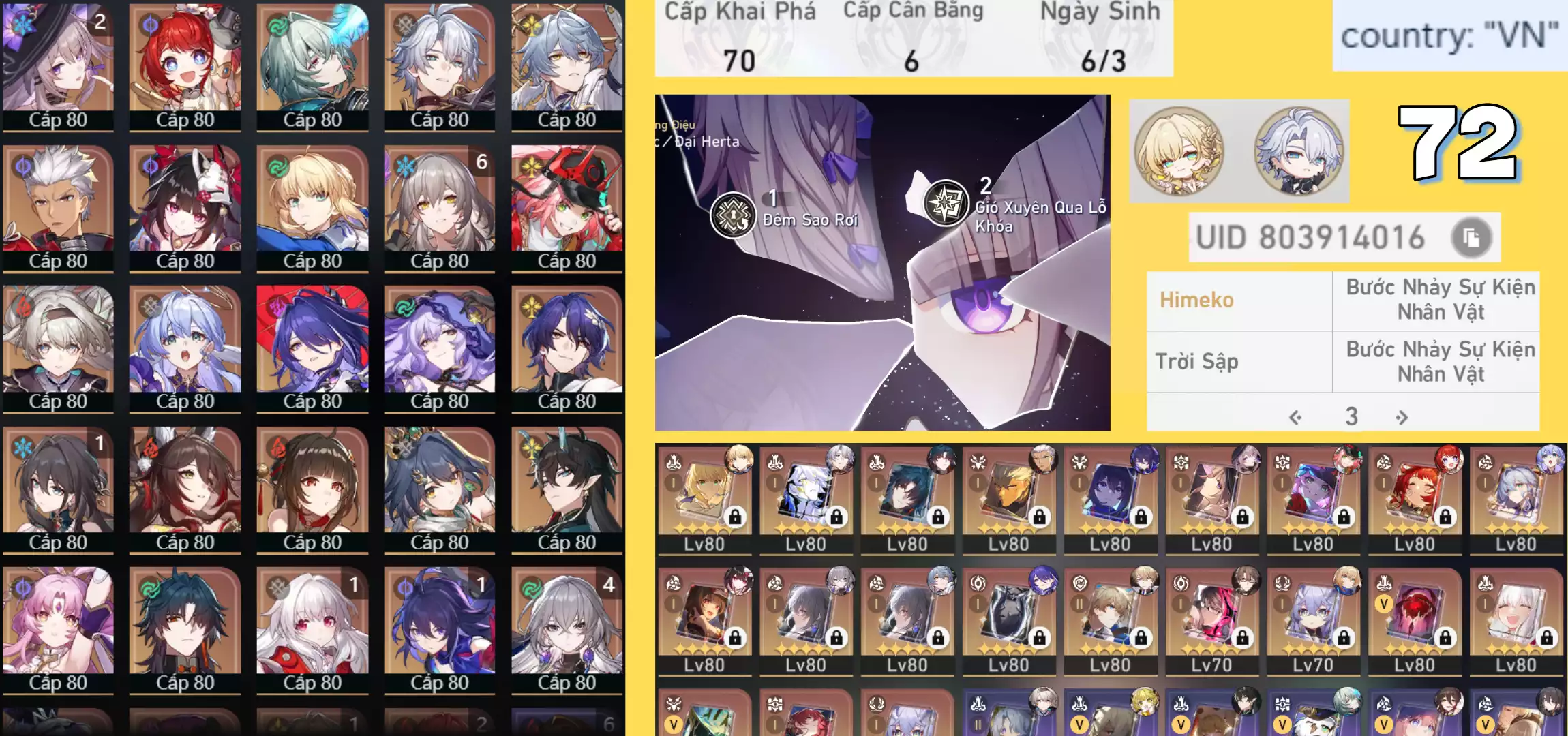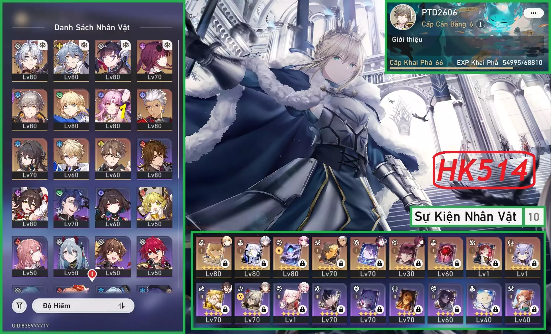 #85496 600,000 AR level 70 Khu Vực asia Tướng 5* 22 VJP : tứ đại Siêu Support E1 : Tribie, Sunday, Robin, Mei - banner nhân vật 15 trang dư 10 vé x10 là nổ ( die lk không ảnh hưởng trải nghiệm game ) Tướng: 22 Vũ khí: 16 Chi tiết