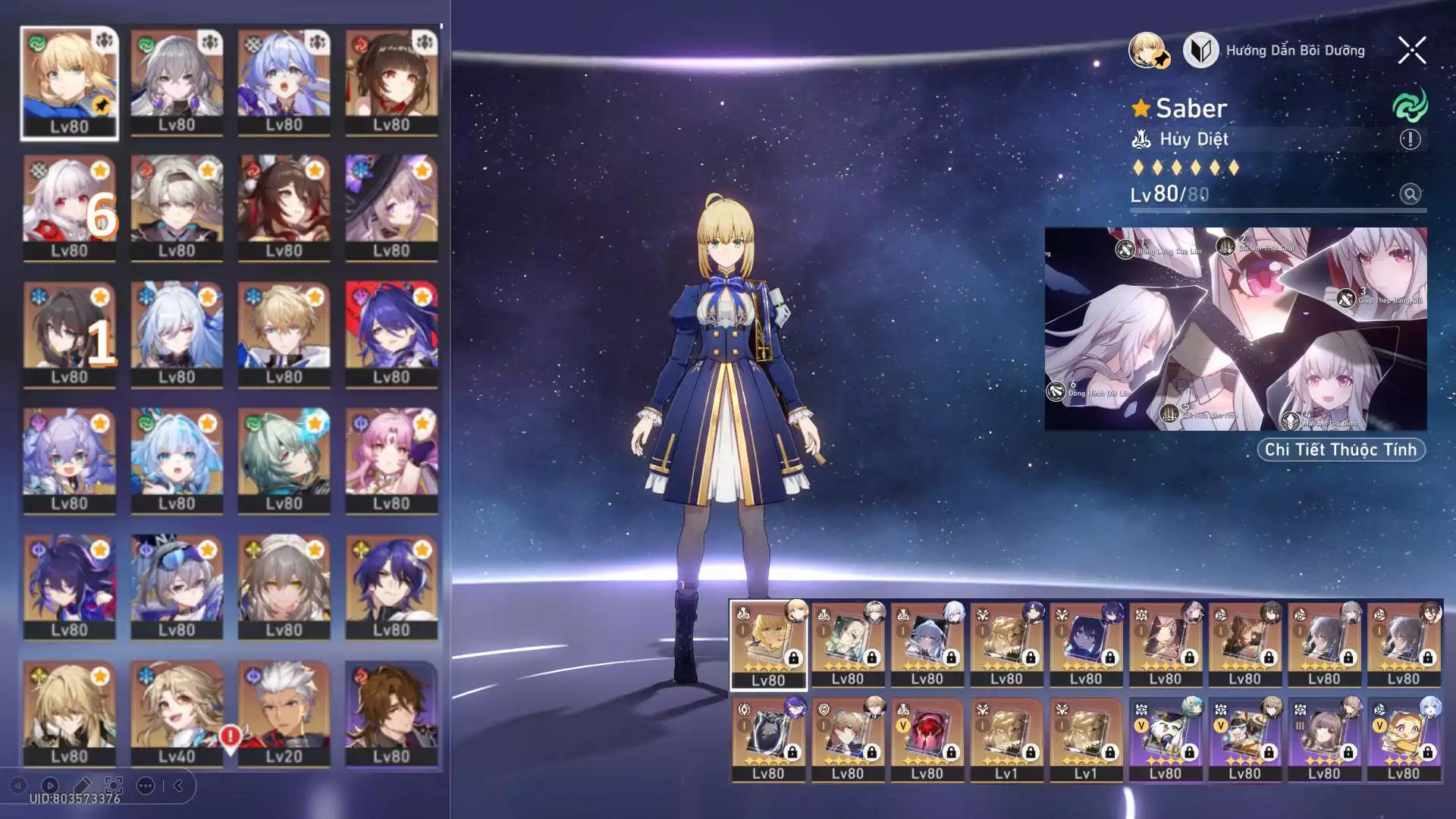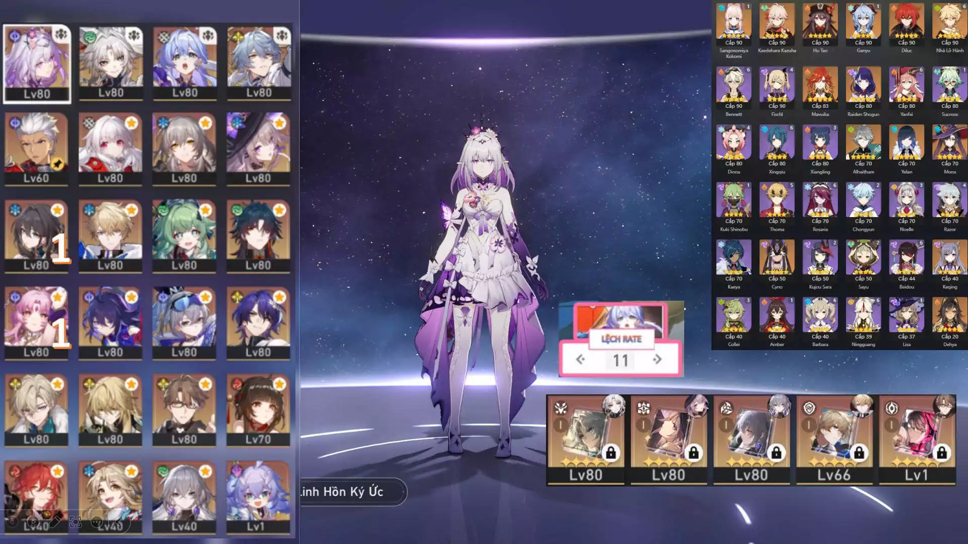 #85487 800,000 AR level 70 Khu Vực asia Tướng 5* 22 VJP : Mei E1, Tribbie E1 Tướng: 22 Vũ khí: 17 Chi tiết